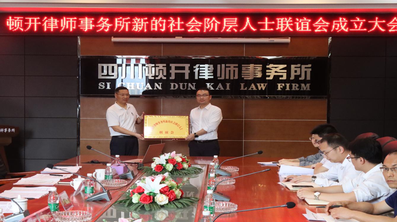 为凝聚新的社会阶层人士智慧,更好地团结新的社会阶层人士中律师群体的力量,2024年4月19日下午,四川顿开律师事务所新的社会阶层人士联谊会召开成立大会。县委统战部、司法局负责人,顿开律师事务所新的社会阶层人士**届会员参加会议。