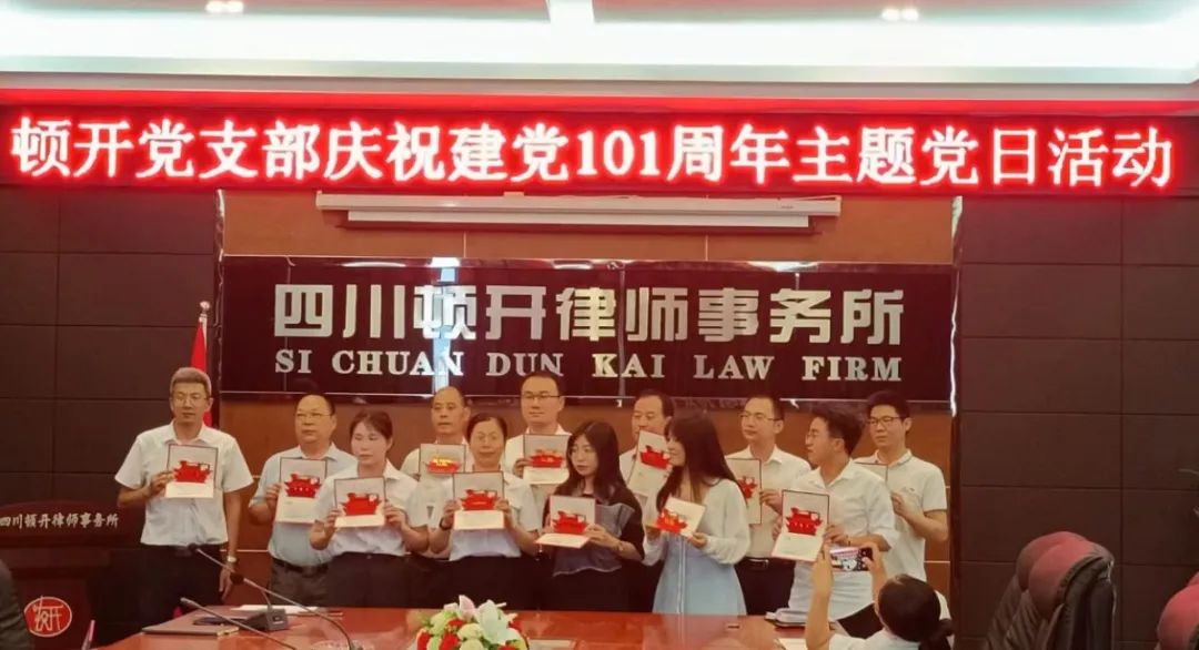 2022年8月2日,中共四川顿开律师事务所支部委员会全体党员欢聚一堂,在邻水县司法局党组的精心指导下,顺利圆满地完成了党支部换届选举工作。