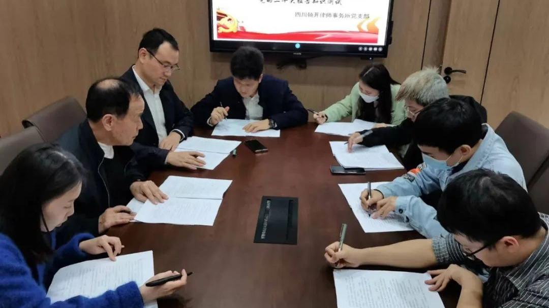 为深入学习宣传贯彻党的二十大精神,检验和巩固学习效果,11月10日上午,四川顿开律师事务所党支部组织全体党员开展“学习原文当标杆、报告百问我来答”——党的二十大报告知识集中测试。
