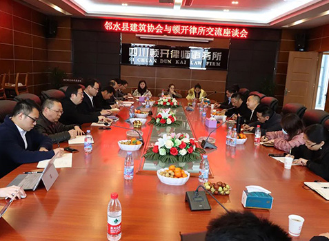 2021年12月4日,邻水县建筑业协会刘文泉会长一行到访四川顿开律师事务所座谈交流,邓健律师及其团队进行了热情的接待。会议吸引了全县建筑企业及专业律师共40余人参会。