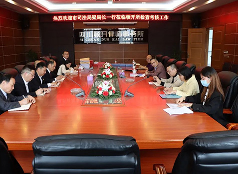 4月12日下午,广安市司法局党组成员、副局长、市律师行业党委书记梁宁川,带领2021年度检查考核组成员蒋稳、朱月才、刘嘉欣、刘秀玲一行,莅临四川顿开律师事务所进行年度检查考核工作。广安区司法局和邻水县司法局的领导陪同检查。